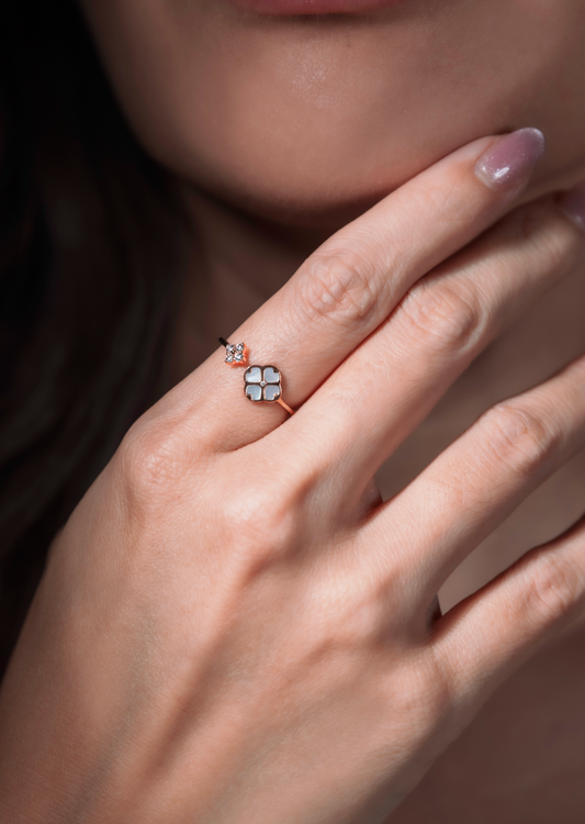 Pearl White Opal on Sterling Silver Keepsake Ring