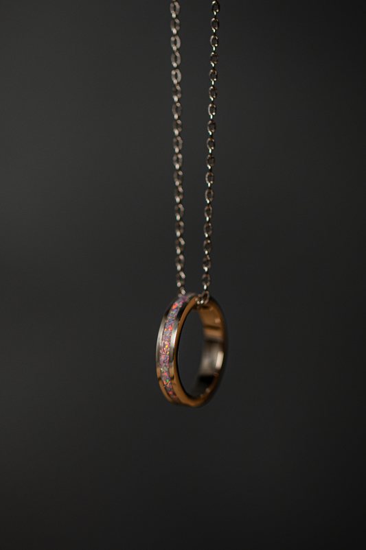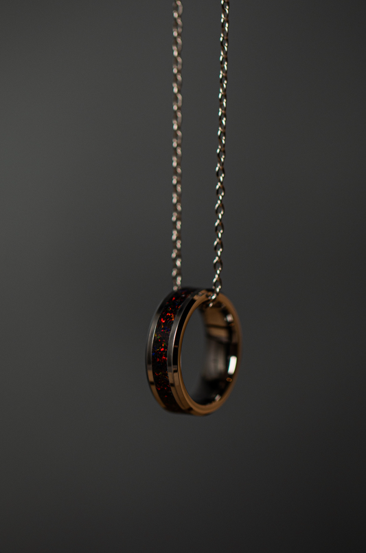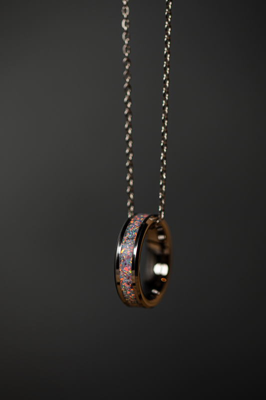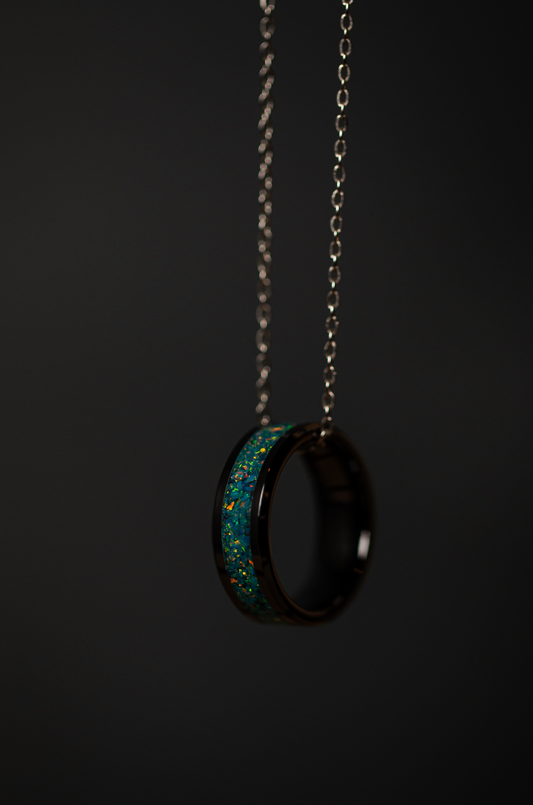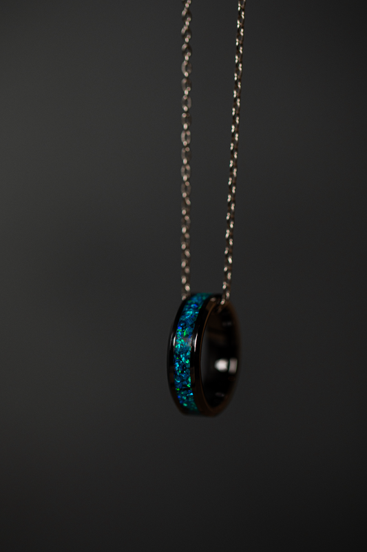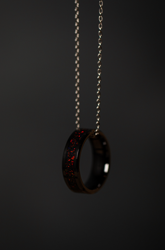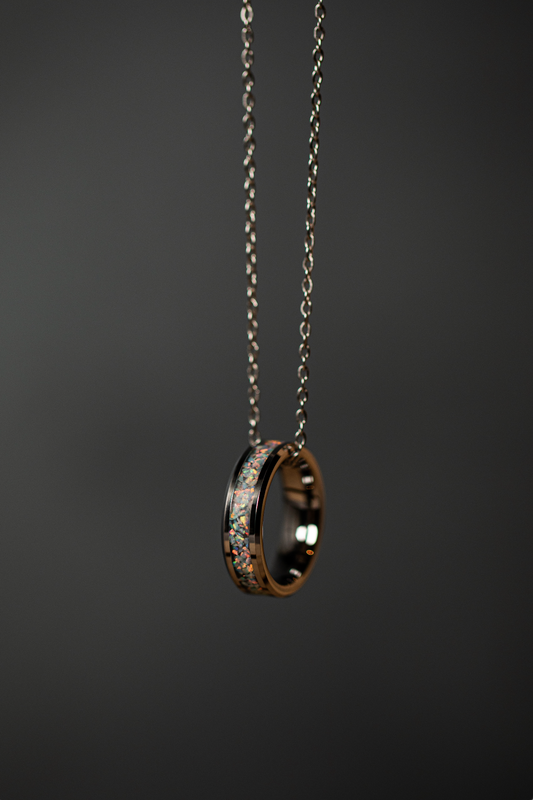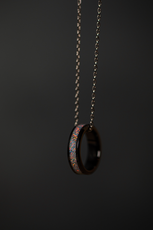 Black Ember Opal on Black Ceramic Keepsake Ring