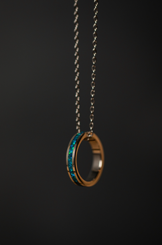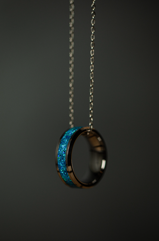 Ocean Blue Opal on Tungsten Keepsake Ring