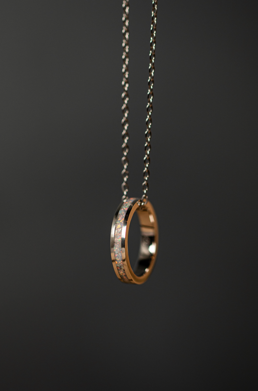 Pearl White Opal on Black Ceramic Keepsake Ring